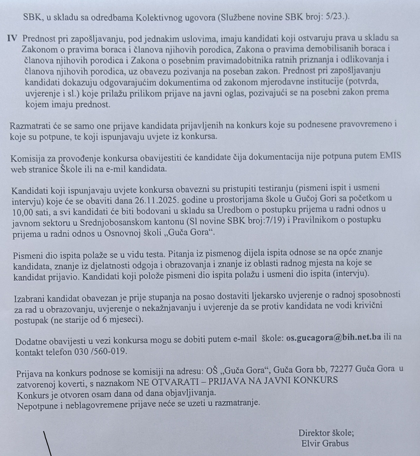 Dodatne obavijesti u vezi konkursa mogu se dobiti putem e-mail škole: os.gucagora@bih.net.ba ili na kontakt telefon 030 /560-019.